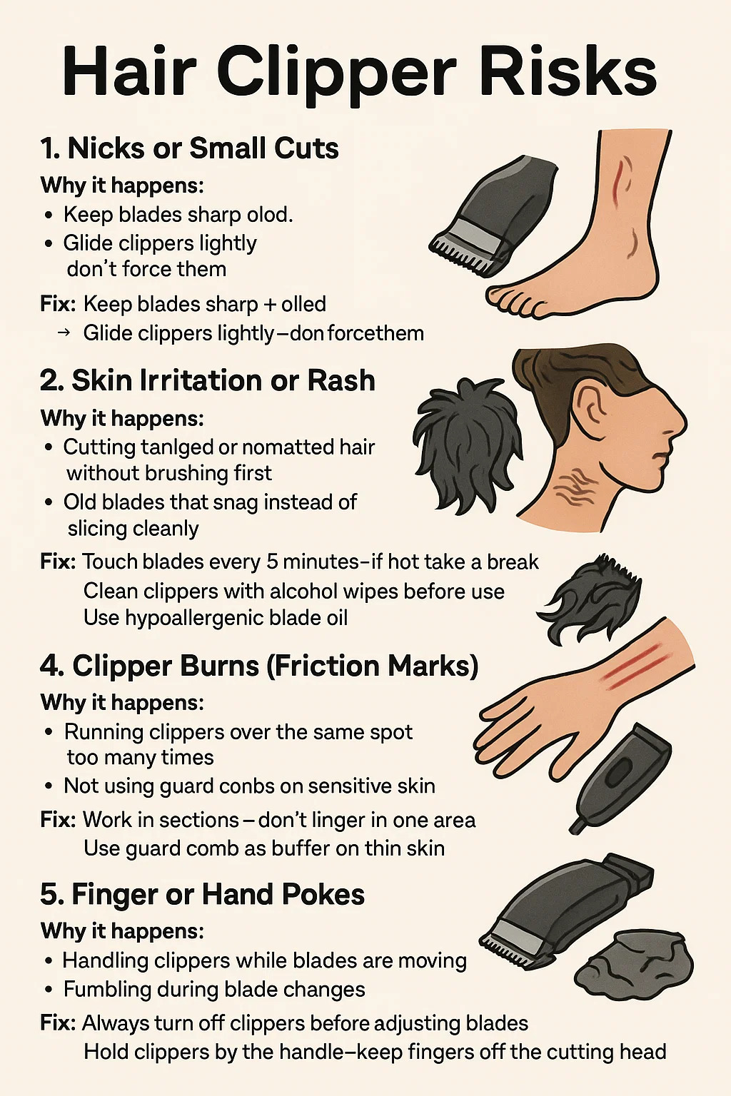 はい、を使用して、 バリカン 慎重に扱わないと、軽傷や不快感を引き起こす可能性があります。一般的なリスクとその回避方法を簡単に説明します。